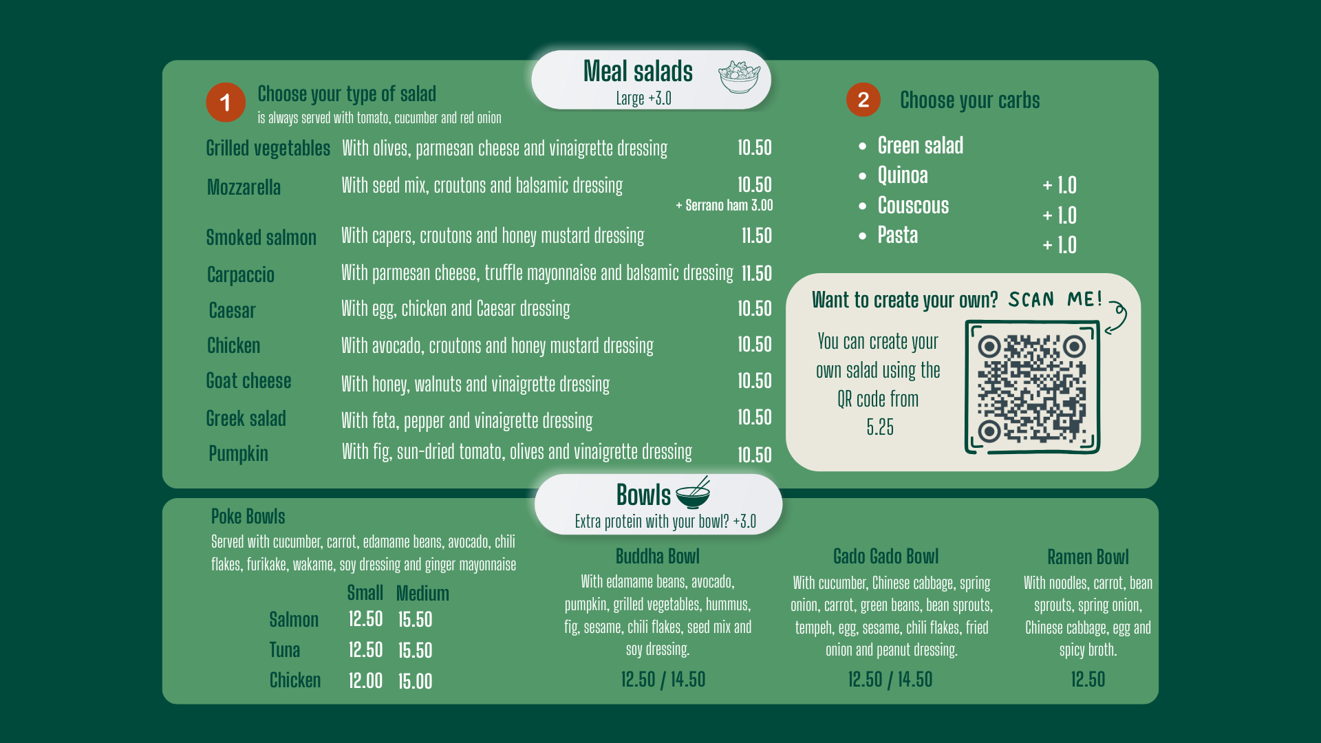 At Soups & Salads you’ll find fresh soups, generous salads, healthy bowls and freshly made sandwiches. Our menu is prepared daily with quality ingredients and offers perfect options for lunch, dinner or a quick, nutritious meal. From warming soups to fresh meal salads and poke bowls — always fresh, flavorful and made with care.
