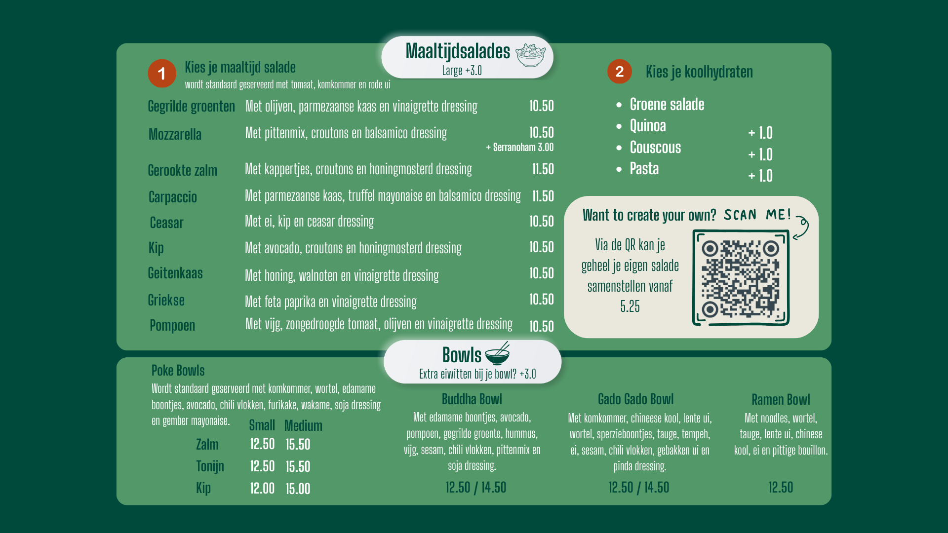 Bij Soups & Salads geniet je van verse soepen, rijkgevulde salades, gezonde bowls en ambachtelijk belegde broodjes. Ons menu wordt dagelijks bereid met verse ingrediënten en biedt volop keuze voor lunch, diner of een snelle maar voedzame maaltijd. Van warme soepen tot frisse maaltijdsalades en poke bowls: altijd smaakvol, vers en met zorg samengesteld.